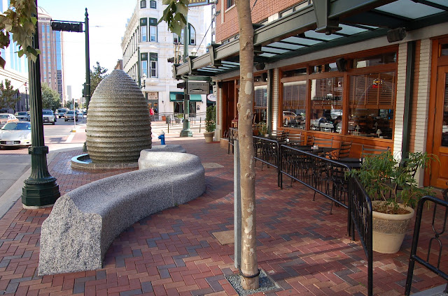 As you click through this site look for the beautiful painted ceramic “picnic tables” by Malou Flato in the fountains at Market Square Park; the four stone vessel sculptures in the fountains on Main St at Preston and Congress; the “Bayou” stone sculpture; and the sidewalk puzzle pieces to name a few.